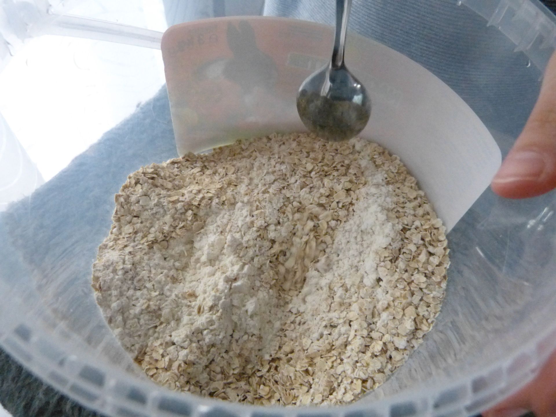 Den Behälter habe ich gereinigt und wieder mit Mehl und Haferflocken - wie am ersten Tag - gefüllt.